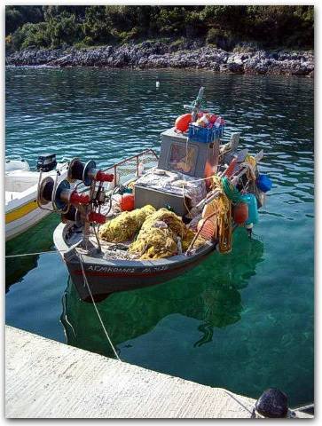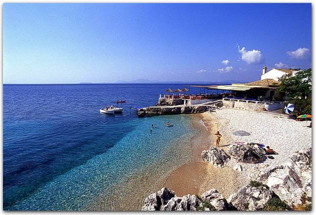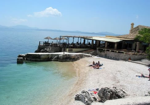 Just 200 yards down the gentle hill is the first small shop, minimarket and taverna and a little further is the charming beachside village of Nissaki with its little beach, lovely harbour and choice of three waterside tavernas. Another small beach is found at the end of a little track nearby.